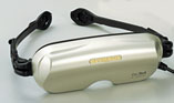 Eye-Trekは、ビデオ機器に接続し、サングラスのようにかけるだけで、臨場感溢れる大画面を楽しめるパーソナルディスプレイで、2m先に52型相当の大画面、72万画素相当の高精細迫力映像が体感できるEye-Trekシリーズの最高機種です。また、音声にも一層の臨場感を実現。さらにPCからの接続も可能で、DVD-ROM ドライブからの映画再生や、PCゲー ム、インターネット配信の映像等も楽しめます。