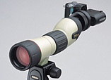 1)デジタルカメラアタッチメントを介してフィールドスコープとデジタルカメラを接続するだけで、簡単に超望遠撮影が楽しめます。バードウォッチングや天体観察の際はもちろん、レンズ交換式ではないデジタルカメラで野球、サッカー等のスポーツシーンなどの超望遠撮影をすることができます。