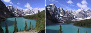 写真の左側はLD-O5MWをセットして撮影。右はデジタルカメラの最も広角側で撮影。