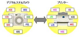 現在でも、デジタルカメラとプリンターを直接ケーブル接続して印刷できる機器が製品化されていますが、各社が独自の方式を採用しているため、機器の組み合わせが制限されているのが実情です。今回策定したDPS規格準拠の機器であれば、メーカーを問わずデジカメとプリンターを相互に接続して利用できるようになります。