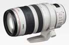 光学系の一部にキヤノン独自のDOレンズ(積層型回折光学素子)を搭載した望遠ズームレンズ。新開発の3積層型DOレンズを採用することで、従来の屈折光学素子のみで設計した、ほぼ同等の焦点距離・開放F値のズームレンズと比べ、全長で約28%減という大幅な小型化を達成しつつ、Lレンズに匹敵する高画質を実現。