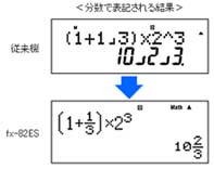 3)フルドット表示を使い、分数は分母と分子を上下2段で表示。