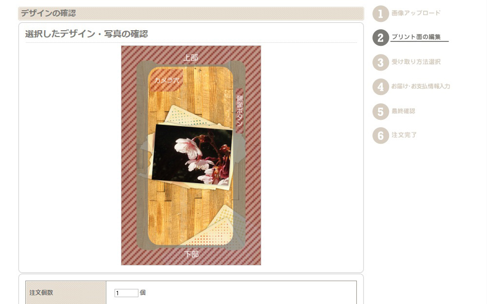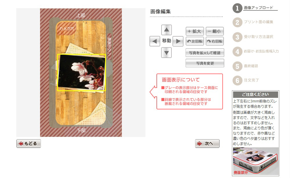 画像編集画面のグレーの部分はケースの側面部分で、ここにも印刷されます。