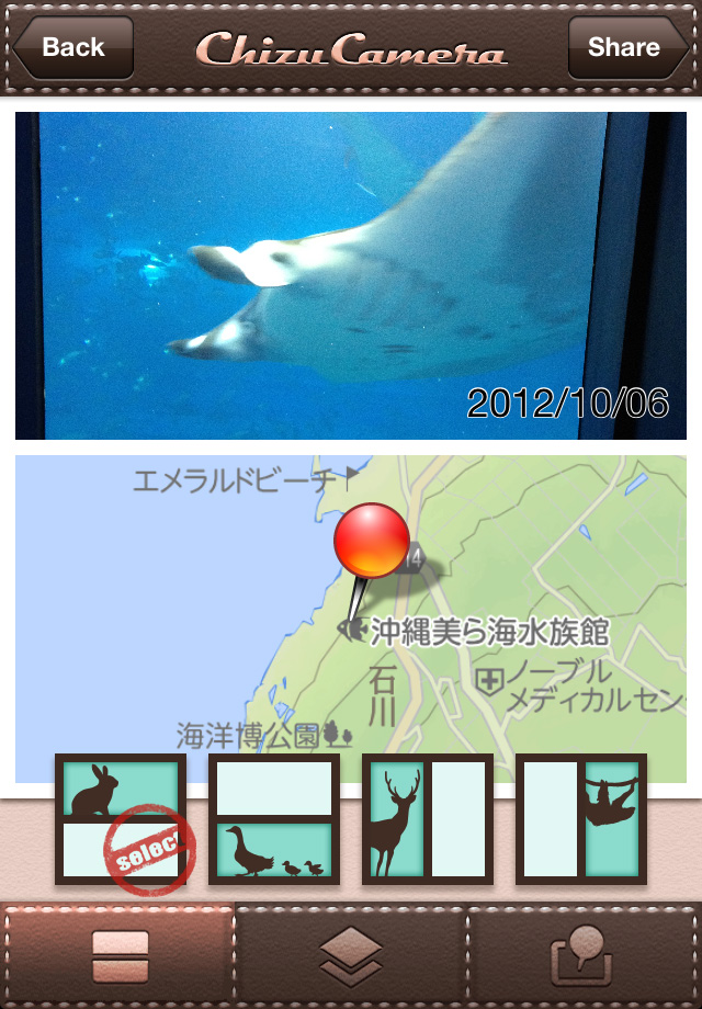 旅行が趣味の人やおでかけ好きの人は「チズカメラ」(iPhone/無料)が重宝するはず。