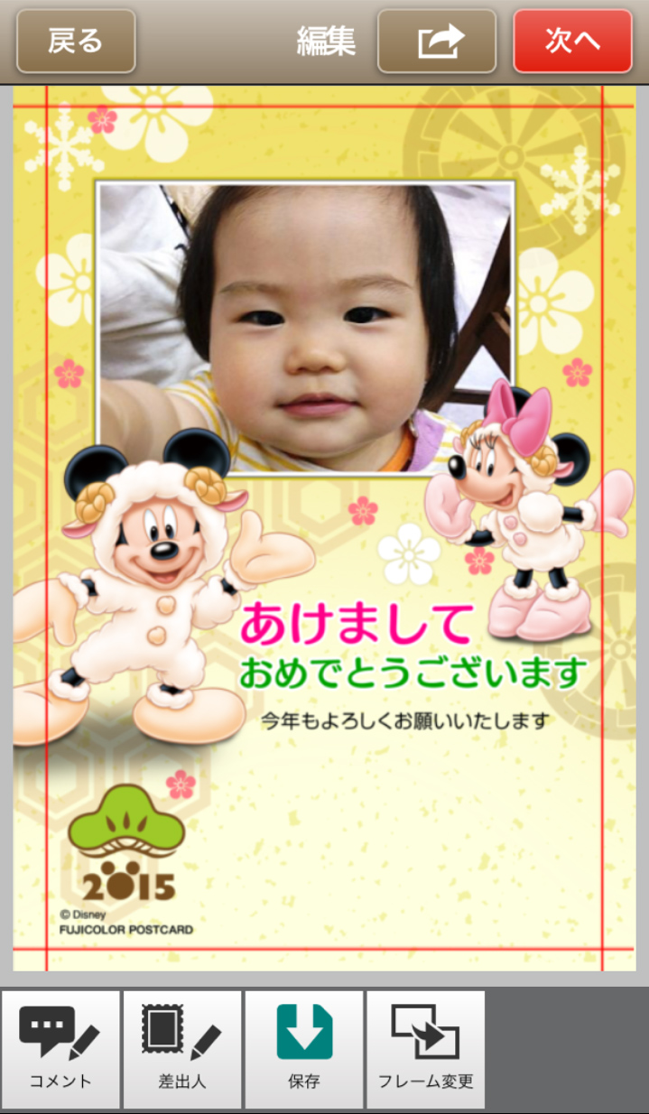 アプリ「カメラのキタムラ フジカラーの年賀状2015 ディズニーキャラクター」(iPhone、Android/無料)には、ミッキーマウスやミニーマウスはもちろん、社会現象になった『アナと雪の女王』など、ディズニーキャラクター達の年賀状がズラリ!