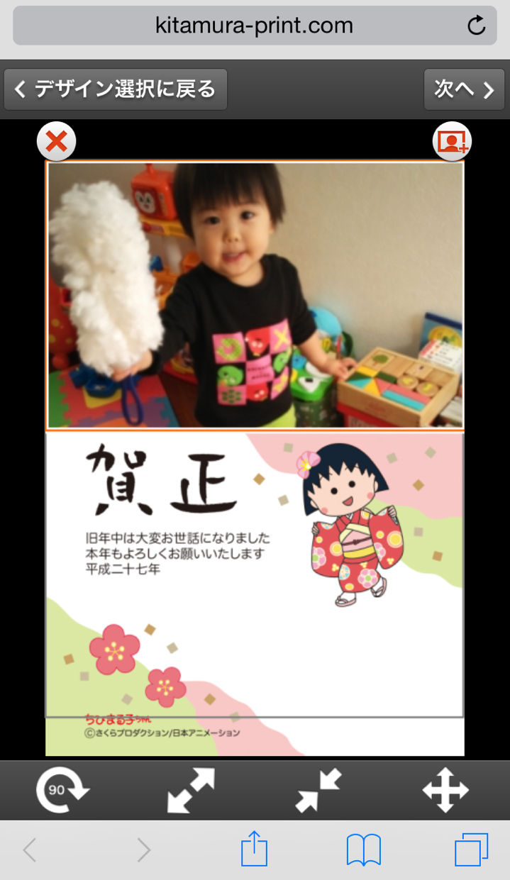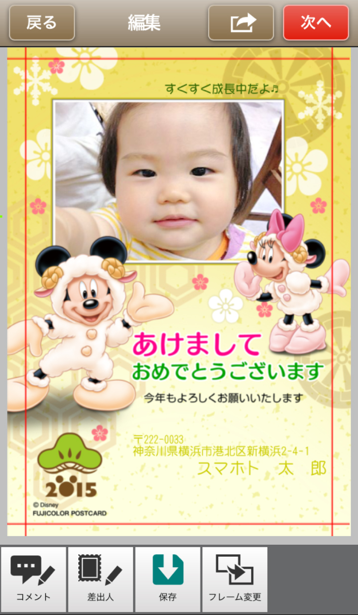 注文方法はディズニーキャラクターとほとんど変わりません。デザインと写真を選び、コメントと差出人情報を加えるだけ。