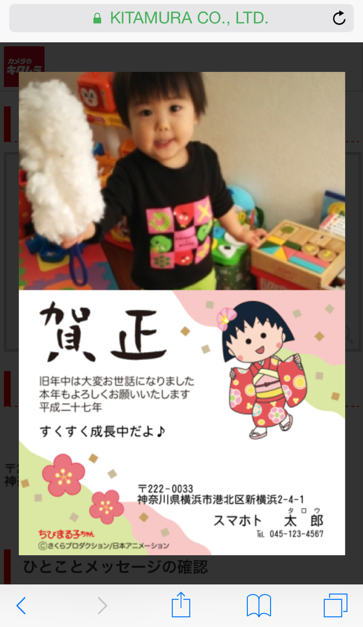 アプリ「写真年賀状 –カメラのキタムラ-」(iPhone、Android/無料)で出会えるキャラクターが「ちびまる子ちゃん」。