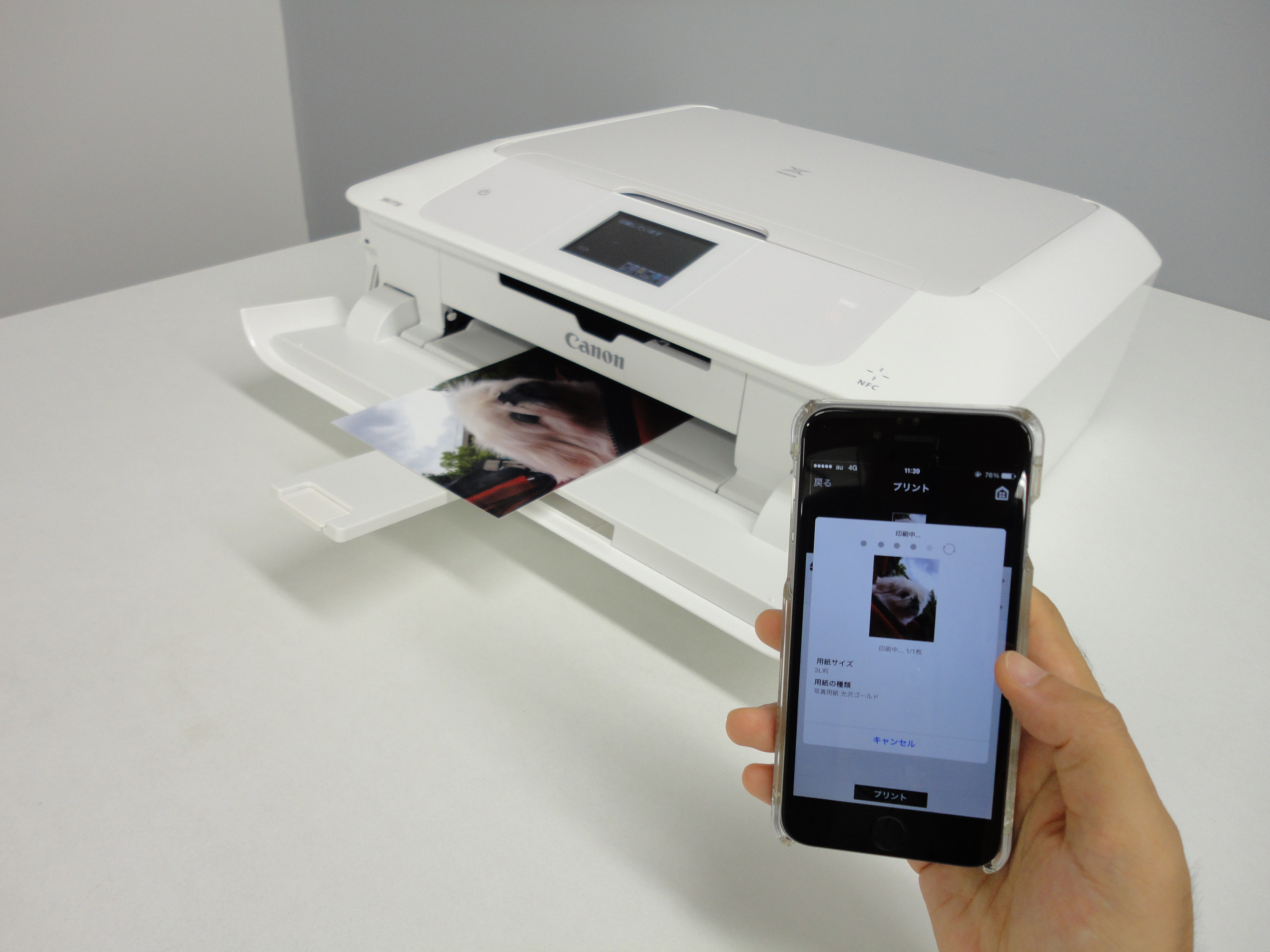 「Canon PRINT Inkjet」でプリントする写真を選び、印刷する紙のサイズや種類を選択します。あとは「プリント」をタップするだけ。
