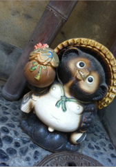 右の2枚のタヌキの置物の写真を見てみてください。