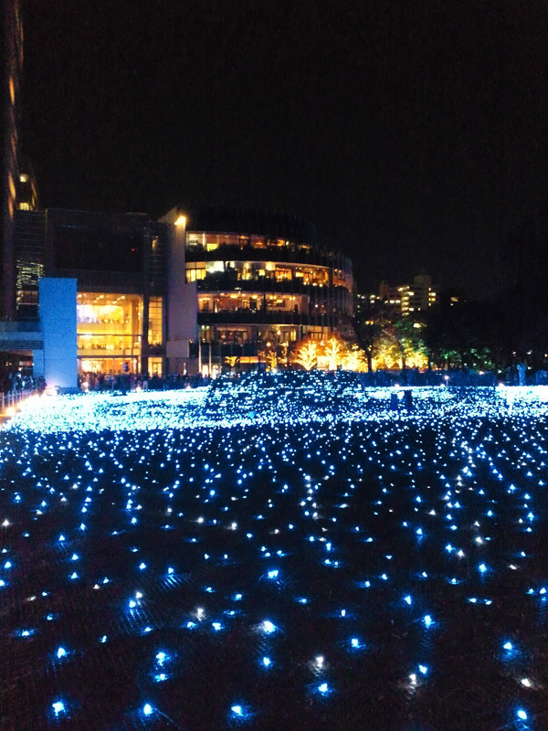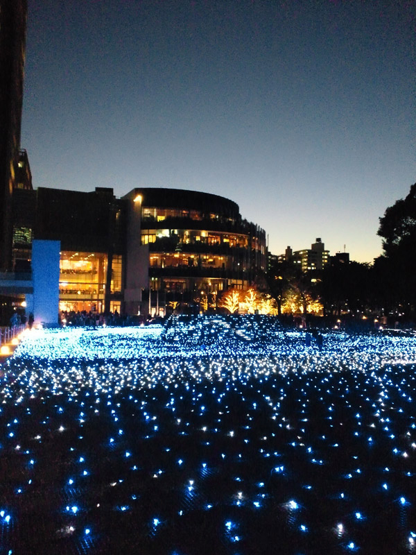ほんのり明るい空ときらめくイルミネーションの対比が、幻想的な雰囲気を生み出し、いつもとはひと味違う写真に。
