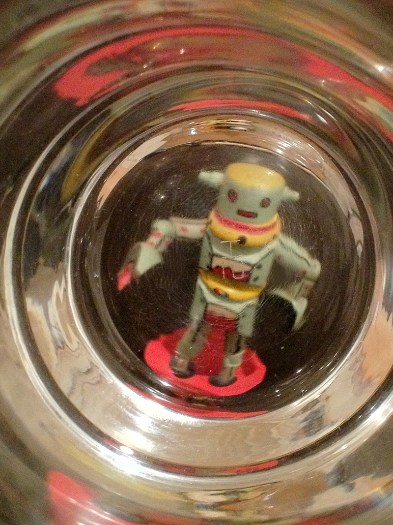 グラスを通すと周囲の景色がぼけ、対象物が浮き上がり、不思議な写真に仕上がります。