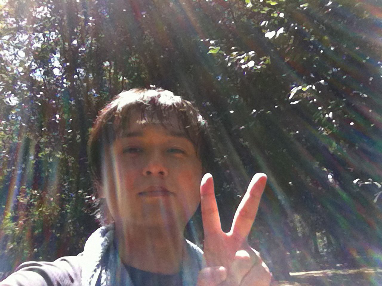 太陽が入り込むと、背景も自分の顔もすべて白く飛んでしまいます。