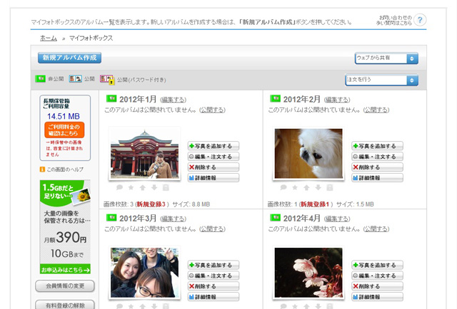 カメラのキタムラの「マイフォトボックス」は、1.5GBまで無料で使えるお得なサービスです。
