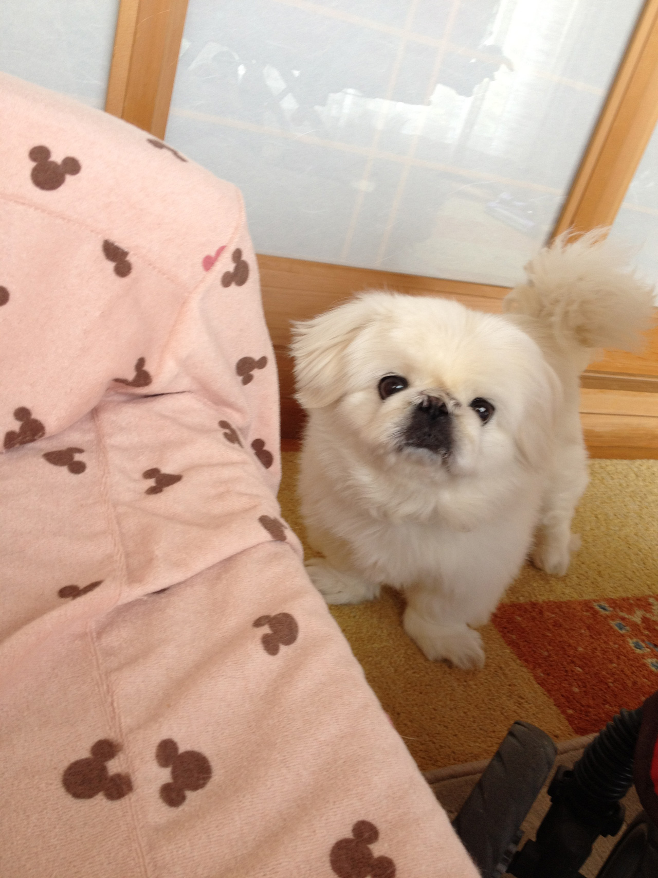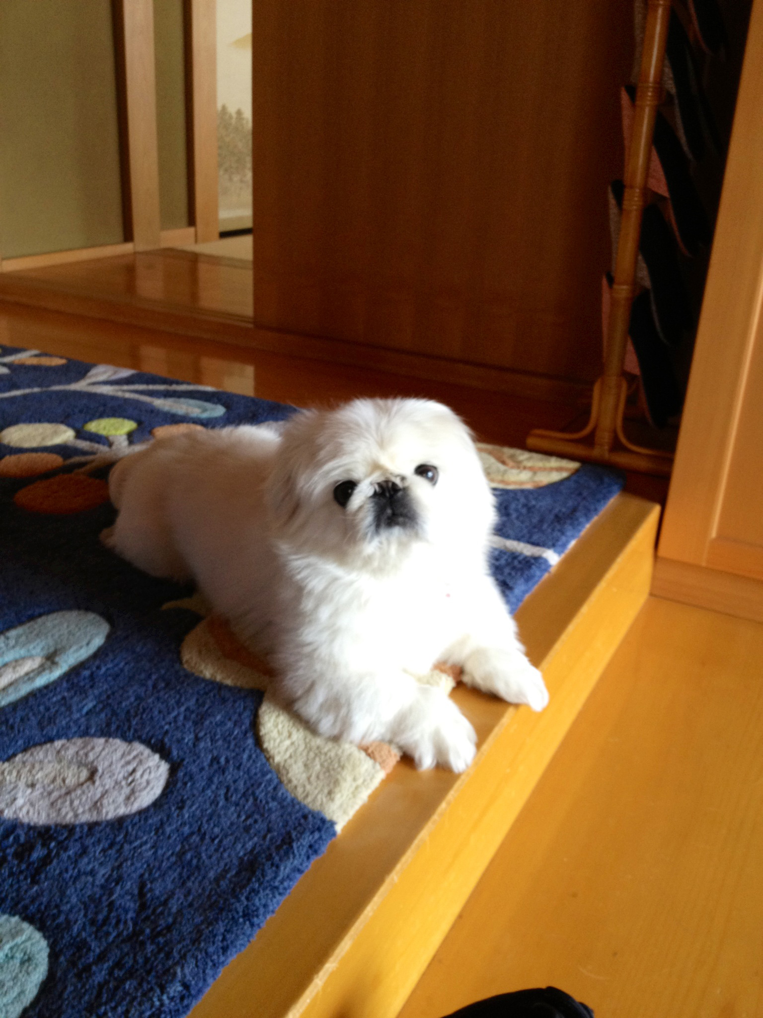 立ったまま撮って、ペットが少し上目遣いになるのもかわいいのですが、その場の雰囲気は伝わりにくい写真になってしまいます。
