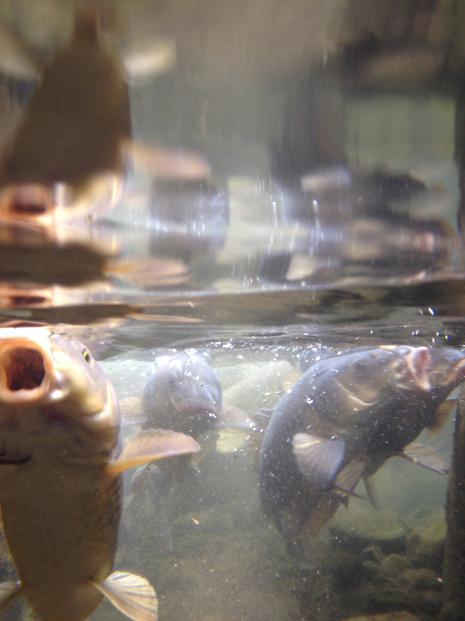そうすると、写真の上半分は水上、下半分は水中という、なんとも不思議な写真が撮れるんです。