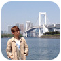 写真3。レインボーブリッジが大きく写り、ダイナミックな写真に。主役となる人物と名所が、よりわかりやすくなります
