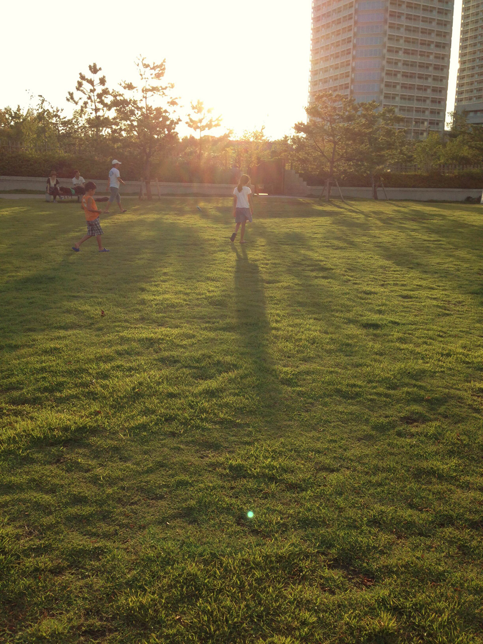 公園や広場、川や海など、周りに大きな建物のない場所で撮る時は、カメラの構え方を変えるだけで雰囲気が変わります。