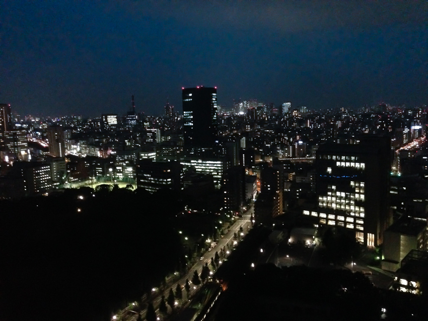 可能な限りガラスに近づければ、照明が写り込まずに夜景を撮影できます。ガラス越しとは思えないような写真が撮れますよ。