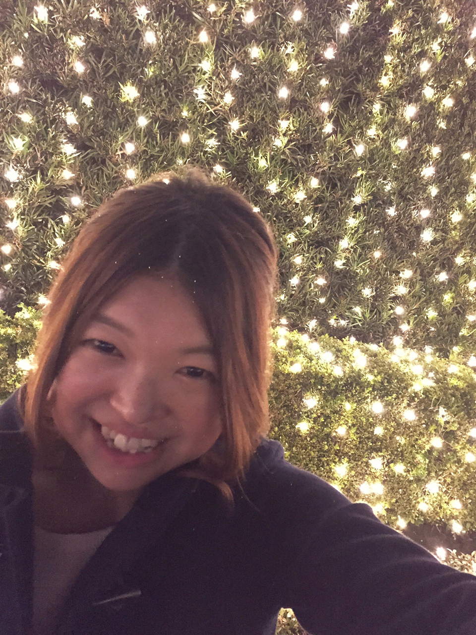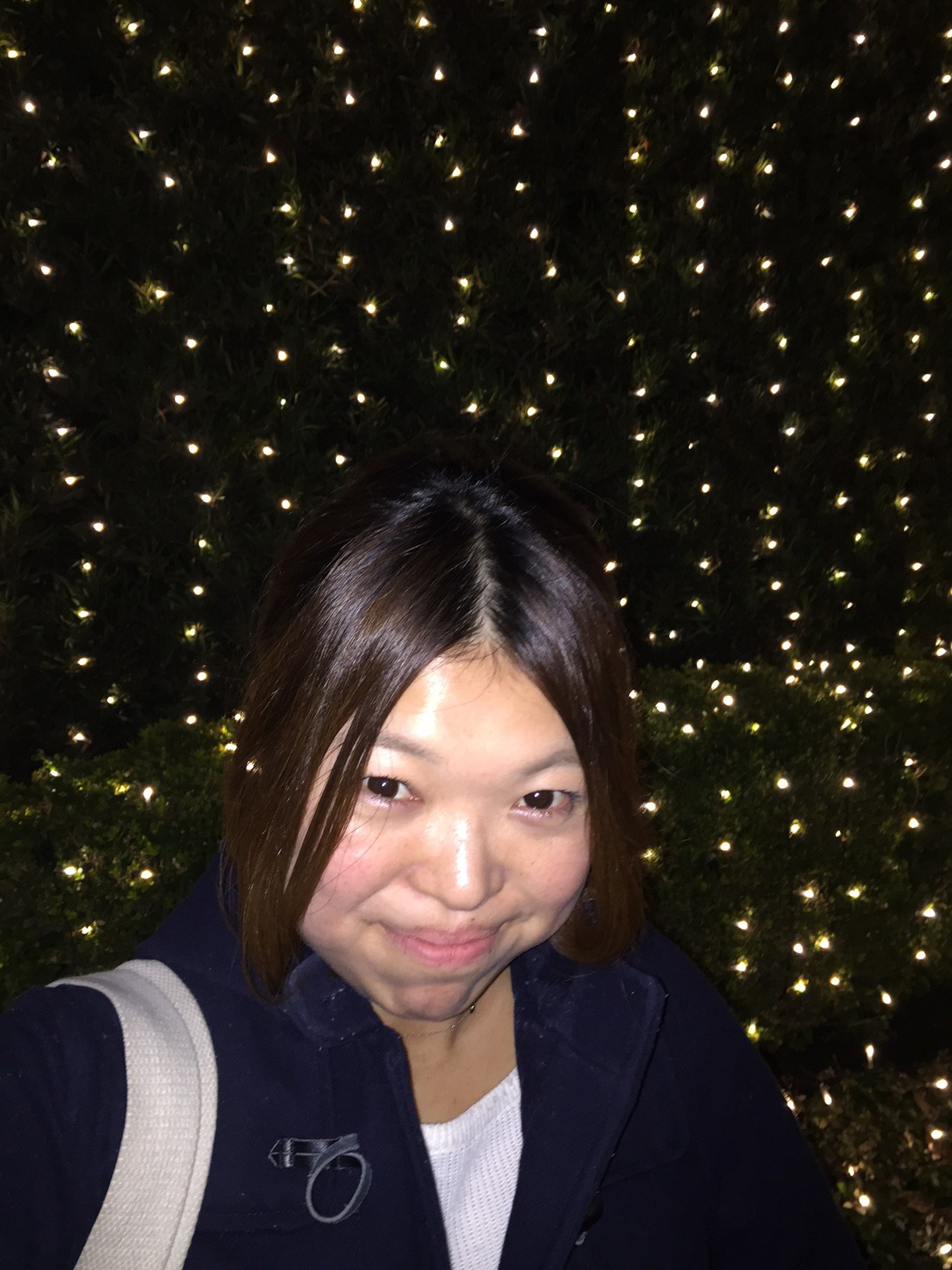 背景全体がイルミネーションで明るい場所で、自分撮りをするときです。