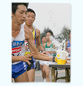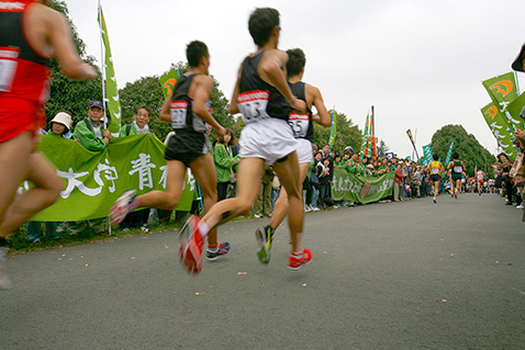 体を低めにしてカメラを構え、下方向からやや煽り気味に撮ると、さらに迫力を出せます。マラソンなどは、向かってくる姿と比べて、走り抜けていく姿の方がほどよくブレるため、スピード感のある写真になります。