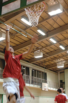 ズームを使わずに遠い距離からコート全体を撮ると、撮影対象が定まらず、散漫とした写真になってしまいます。スポーツの躍動感もまったく伝わりません。