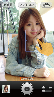 被写体にカメラを向けたら、ピントを合わせたい部分でタップ&ホールドします。すると青い枠(ガイド)が2回縮小と拡張を繰り返した後、静止します。枠が静止したら、その場所にピントがロックされます。指を離してシャッターボタンをタップ。
