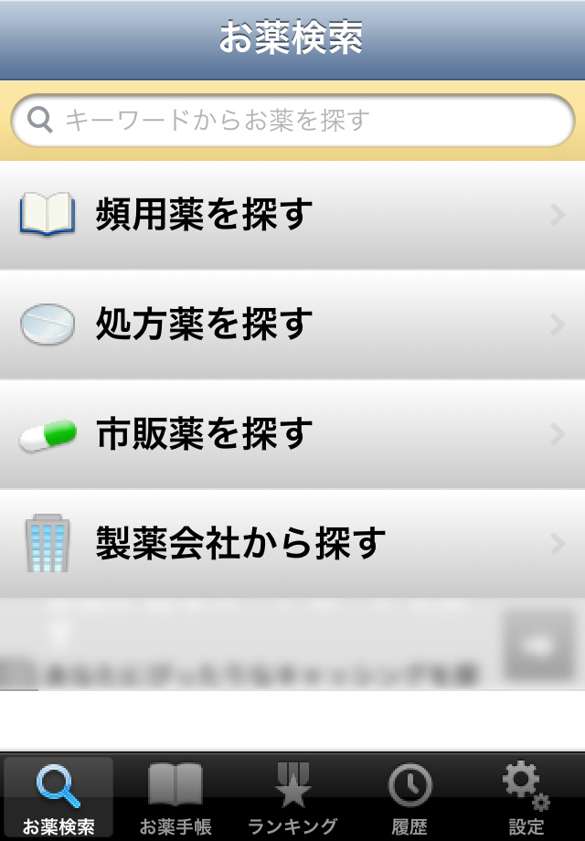 5つの検索方法からお薬を探せる!