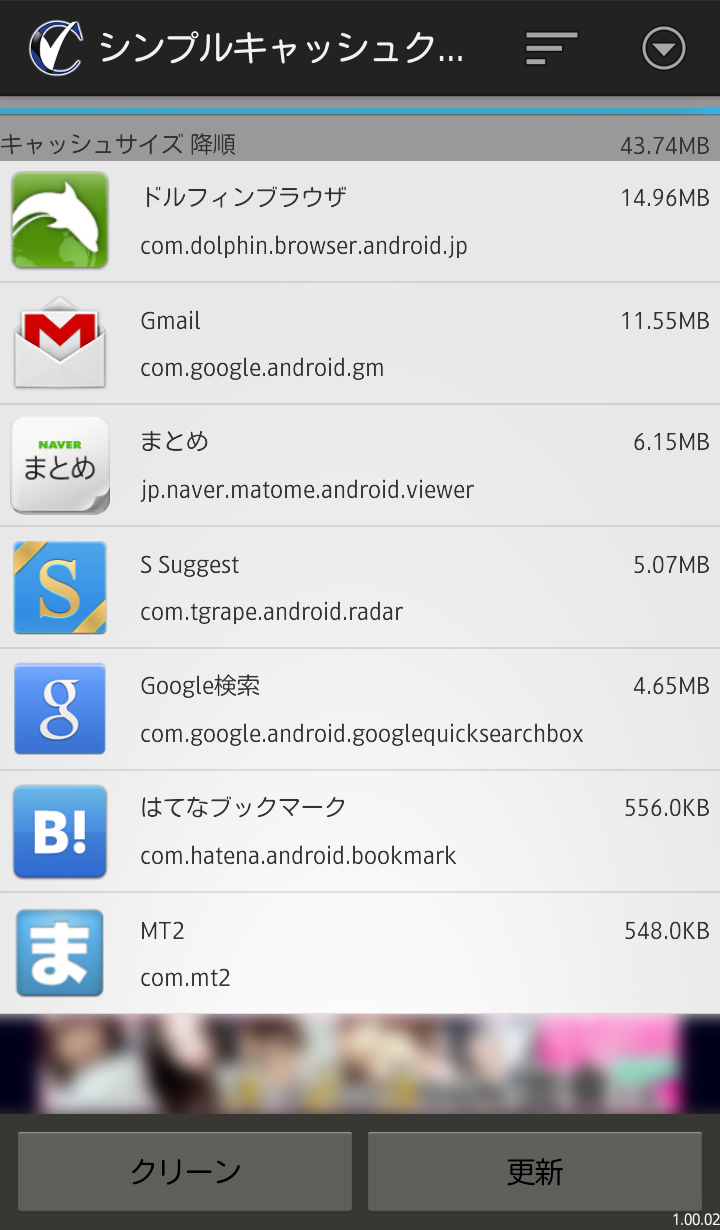 キャッシュの消去はクリーンボタンをタップするだけ!