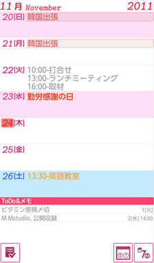 使い方は、簡単! 普通の手帳に書き込んでいくように、日々の予定を入力していきましょう。文字やその日の背景の色を変えることができるので、重要な予定は一目でわかるように表示できます。また、その日の予定とは別に、ToDoリストを入力しておくこともできるので、このアプリを上手く使いこなせば、別のアプリでその日のToDo管理をしなくても大丈夫そうですね。