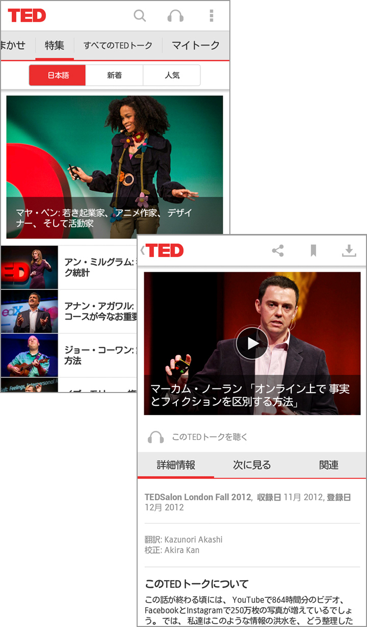 様々な分野の魅力的なプレゼンテーション動画を字幕付きで視聴できるアプリ!「TED」