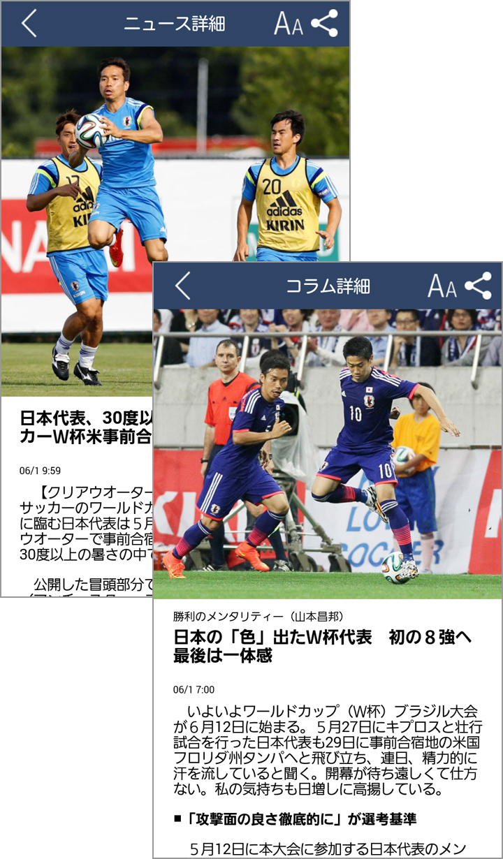 サッカーニュースや、専門ライター陣によるコラムが読める!
