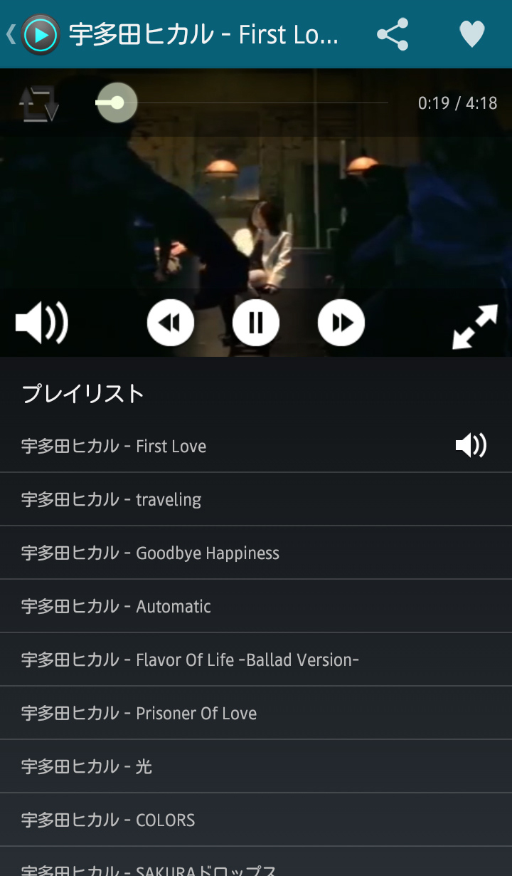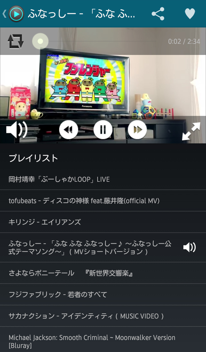 リストアップされた動画は自動で再生されます。標準のYouTubeアプリを開いたり、ブラウザでYouTubeのページを表示することなく、YouTube上のアーティストのミュージックビデオから再生リストを作成し、ループ再生します。1曲目の再生が終わると、自動的に次の曲の再生が始まります。再生リスト全体を再生したいときは、再生画面左上のループボタンをタップしましょう。
