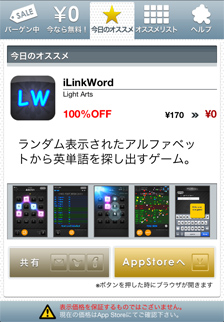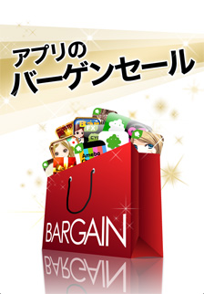 「App Store」や「Android Market」で販売されている有料アプリのバーゲン情報(値引き情報)がまとめられている、便利アプリ。期間限定で値引きされているアプリや、無料になっているアプリの情報が一目でわかるので、とっても便利です。ゲームやカメラアプリをはじめ、様々なジャンルのアプリがたくさんアップされているので、お得な情報を見逃さないで!