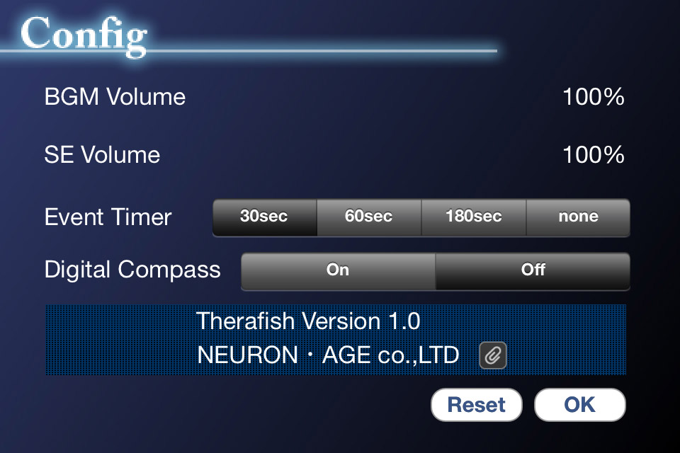 [OK]をタップすると設定が保存され、メイン画面に戻ります。[Reset]をタップすると、設定が初期状態に戻ります。