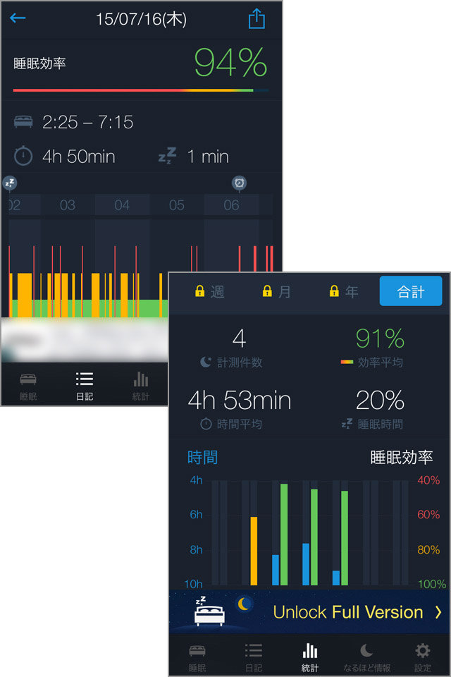 ※アプリの広告非表示・さらに詳しい統計・月の満ち欠け分析・スマートアラーム機能・スヌーズ機能・追加のアラーム音・夢分析などの利用は、アプリ内でフルバージョンの購入(iPhone版:¥250 Android版:¥200)が必要です。
