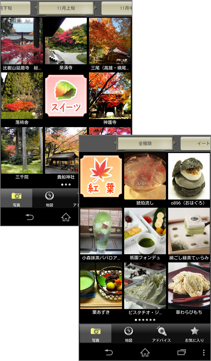 京都の紅葉とスイーツを写真でチェックできるガイドアプリ!「京都 紅葉&スイーツ ~旅街道シリーズ~」