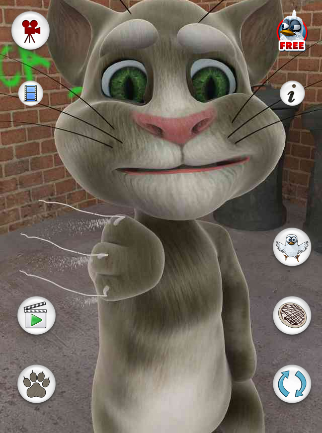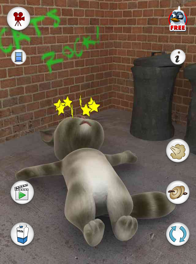 牛乳を飲んだり、画面を引っ掻いたりするトム。録画もできます!
