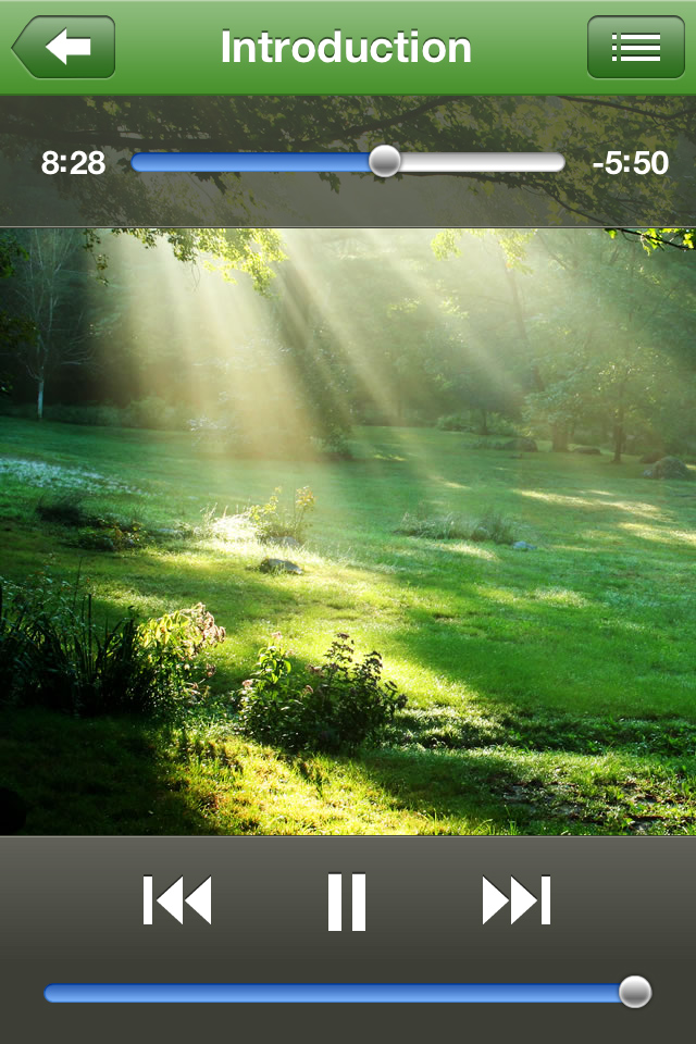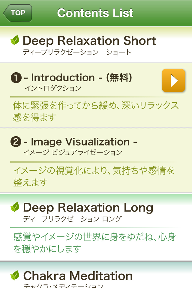 ヨガ用語やプログラムの流れが理解できたらTOPに戻り、[はじめる]をタップしましょう。無料で体験できるプログラムは、[Deep Relaxation Short(ディープリラクゼーション ショート]の[-Introduction-](14分19秒) です。これは、体を緊張させてから緩めることで、深いリラックス状態を作るプログラム。[プログラムの流れ]で図解されていたように、部屋を暗くしてヨガマットかふとんの上で仰向けになったら、再生ボタンをタップ。幻想的な音楽が流れ、優しいインストラクターの声が響きます。20分の寝たまんまヨガ(ヨガニードラ)は、4時間の睡眠に相当するといわれ、実際に体験してみると、途中で寝てしまうほどのリラックス体験ができます。眠れない夜や疲れた日にピッタリのアプリ、ぜひお試しください!