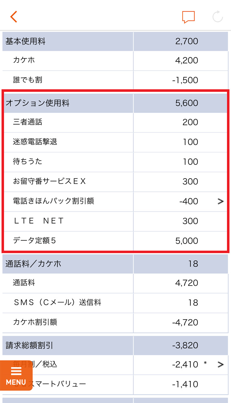 使っていない「オプション・サービス」はカット