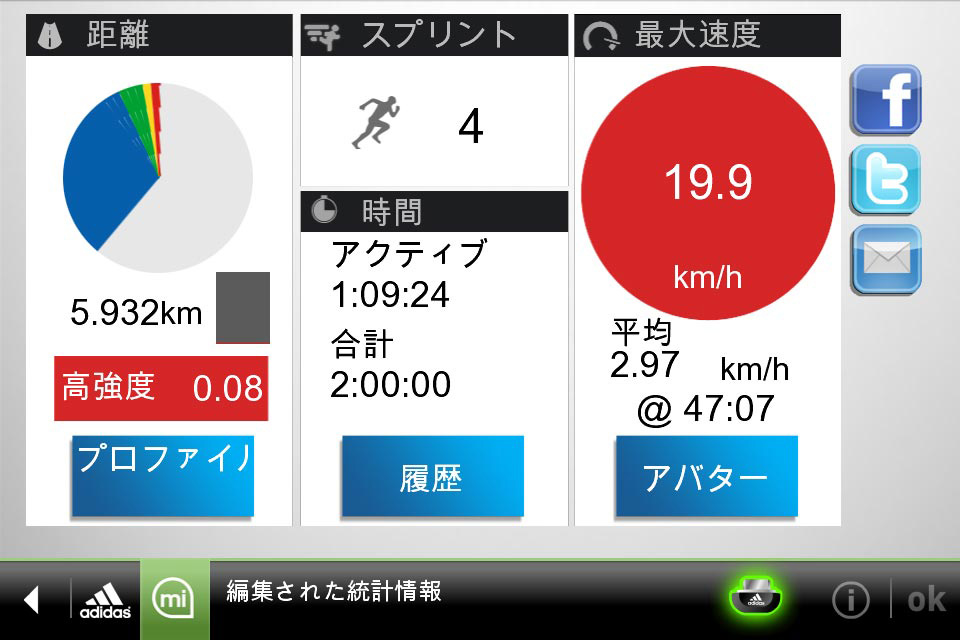 サッカーやバスケットボール、テニス、ランニングなど、走るスポーツに対応しており、ゲーム中の総走行距離や総パフォーマンス時間、最高スピード、時間別距離などが測れます。